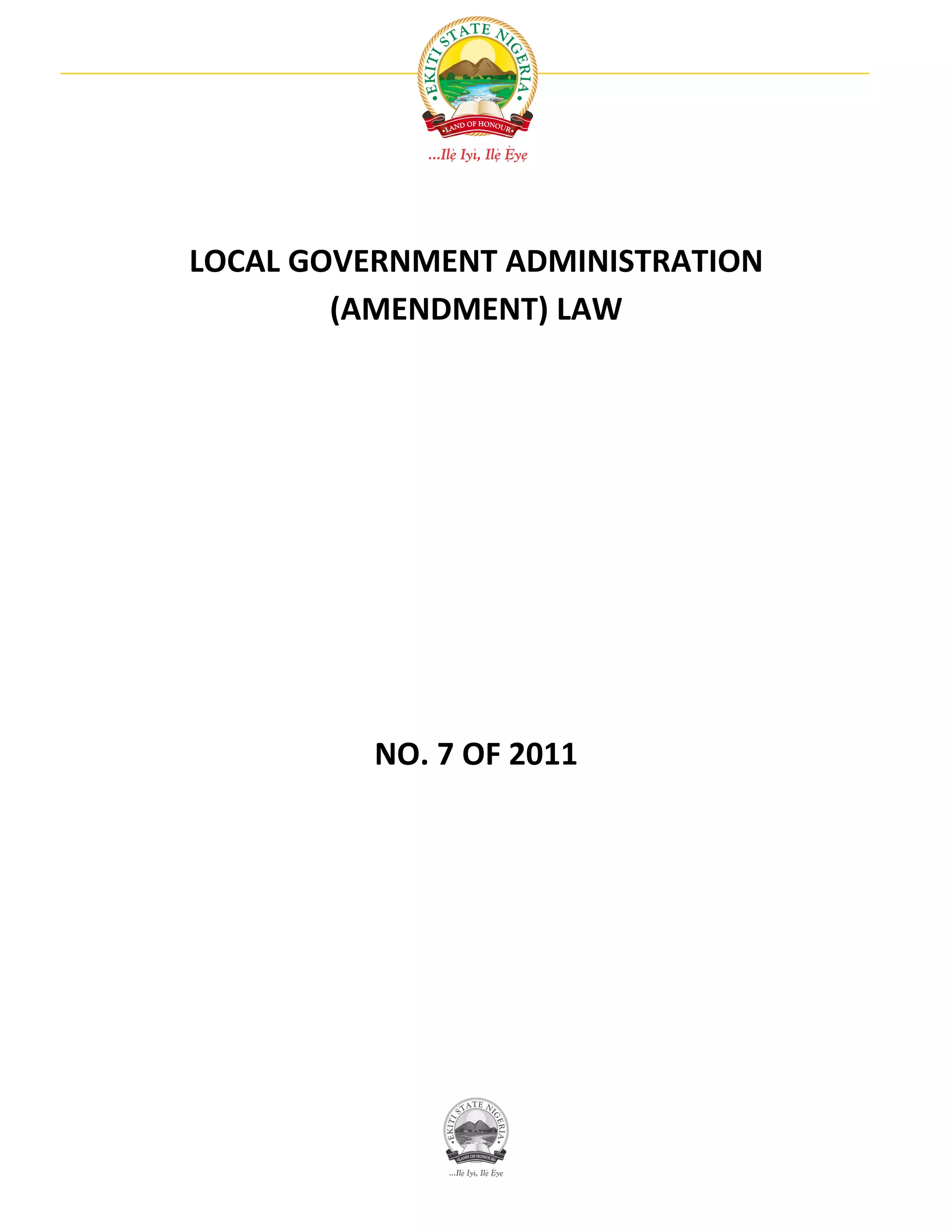 1) The document amends several sections of the Local Government Administration Law in Ekiti State, Nigeria.