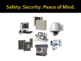 This security company offers home and business security systems including camera surveillance and 24/7 monitoring to protect against threats like home invasion, burglary, and fire. They provide installation and have professionals standing by to design a custom system at various protection levels. With their state-of-the-art systems, customers can benefit from insurance discounts of up to 15% and peace of mind.