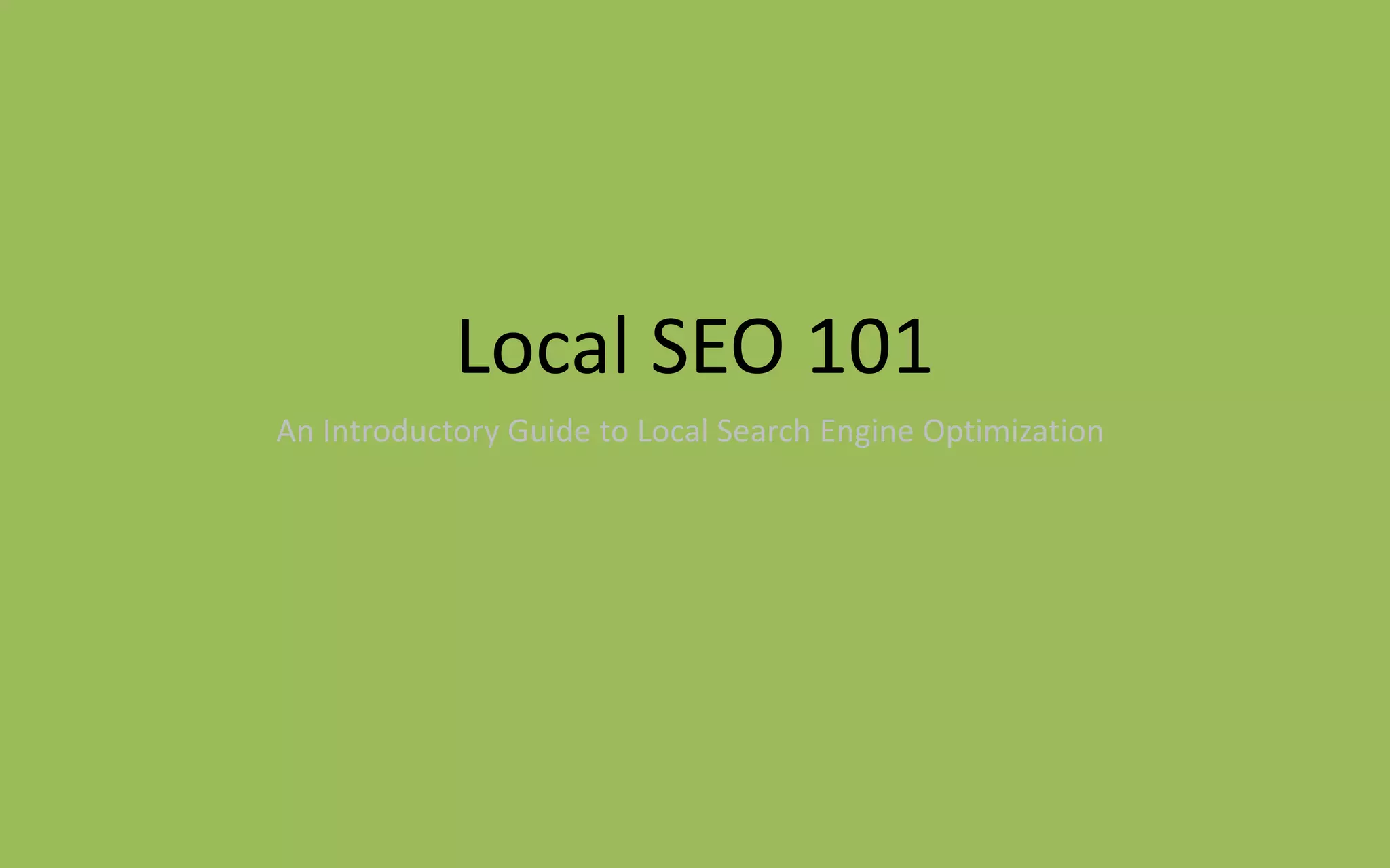 This document provides an introductory guide to local search engine optimization (SEO). It discusses what local SEO is, how it differs from normal SEO, and the types of businesses that need local SEO. It highlights that a large percentage of searches have local intent and local SEO can help businesses attract local customers. The document provides tips for local SEO activities like claiming local business listings, optimizing online profiles, getting reviews, and on-site optimization. It emphasizes the importance of consistency across listings and profiles.