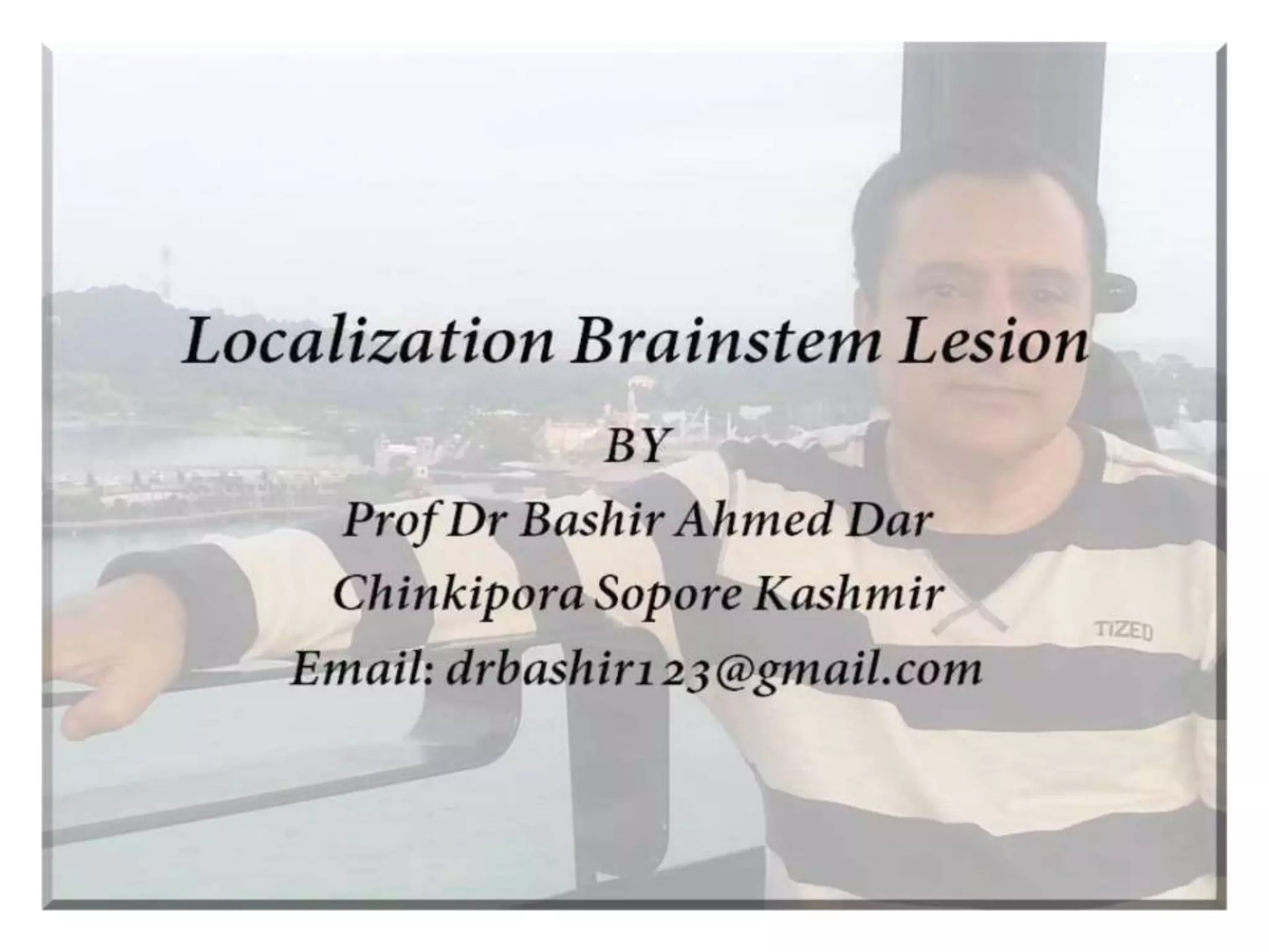 The document discusses the brainstem, which consists of the midbrain, pons, and medulla. It refers to a previous lecture on brain lesion localization and includes information on subcortex and internal capsule in the presentation. The lecture on brainstem lesions builds upon earlier concepts introduced by Prof. Dr. Bashir Ahmed Dar.