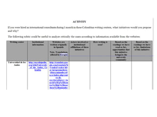 2. An activity asking readers to comment on the literacy practices inferred from one abstract and reflect on possibilities for curriculum implementations in Brazilian writing courses based on experiences at the University of Wisconsin-Madison.