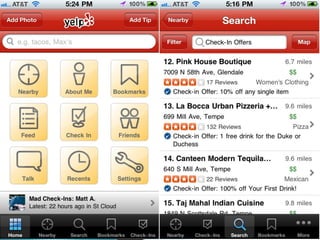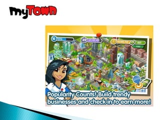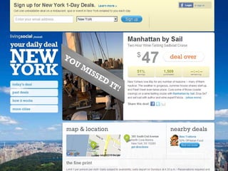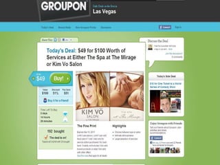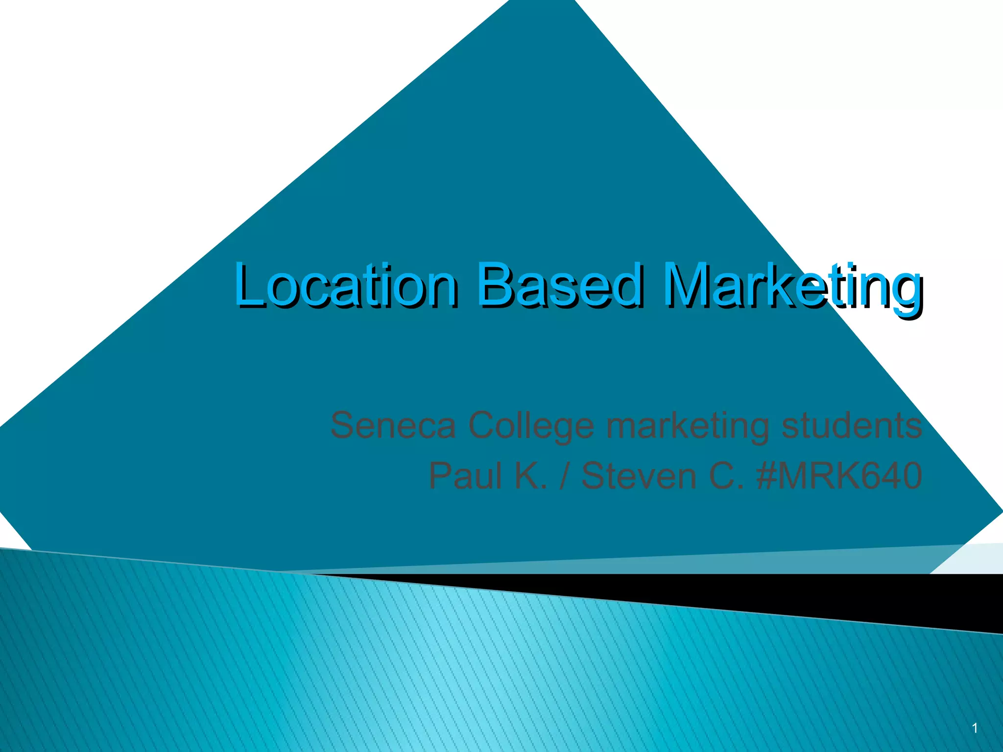 Location based marketing utilizes a business's location to interact with and target customers. It can involve sending targeted messages to customers based on their location, offering deals to those in a certain area, or allowing customers to check-in and share their location on social media. Some common location based marketing tools discussed in the document include Facebook Places, Foursquare, Google+ Local, Twitter, Living Social, Groupon, and Yelp. These tools allow businesses to promote themselves to customers within a certain radius, learn more about customers' locations and interests, and offer deals or rewards based on check-ins.