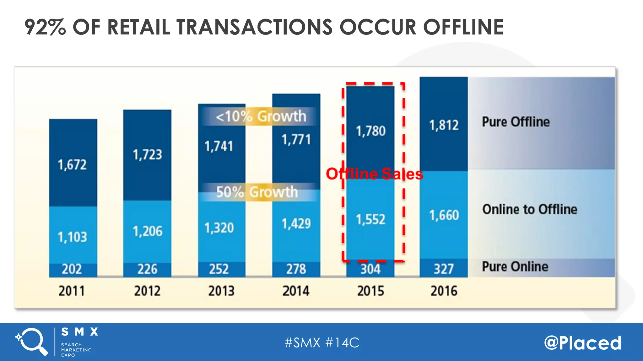 The document discusses location-based optimization (LBO) in retail, emphasizing that 92% of retail transactions occur offline and that digital clicks do not equate to store visits. It highlights the importance of utilizing accurate location data for improving store visitation rates and presents insights on conversion windows and geofencing. The content concludes with a note to connect at the next SMX event for further discussion.
