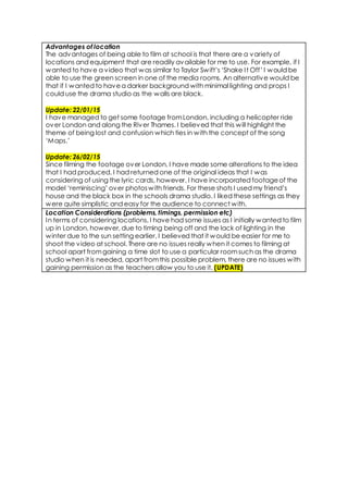 4) Facing some issues filming in London due to timing and winter light, so shooting more at the convenient and accessible locations available at the school.