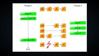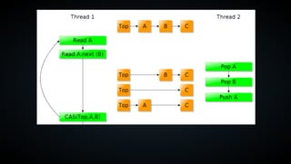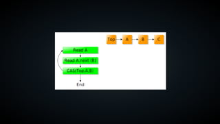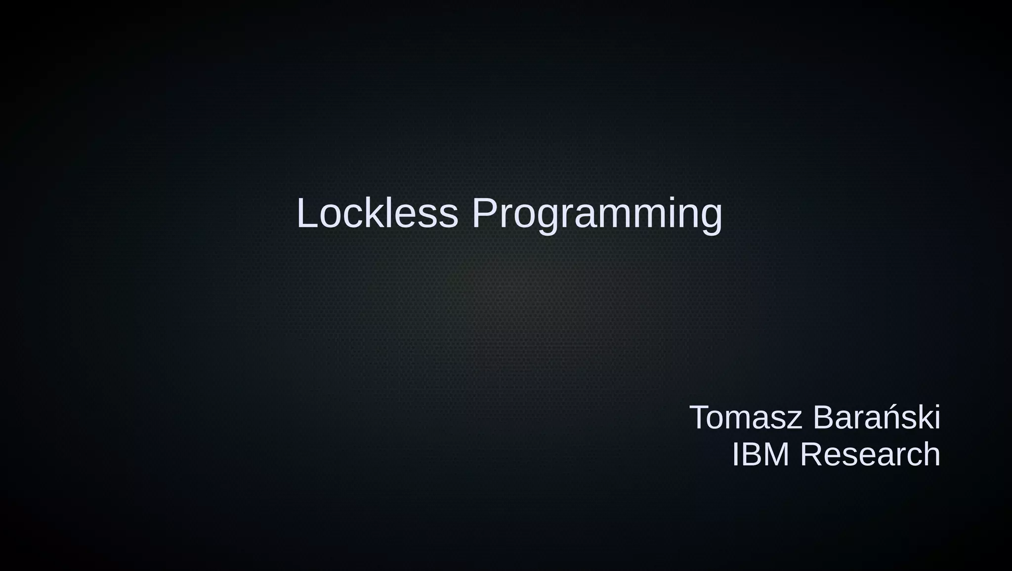 The document discusses lockless programming, which involves using multiple threads to access shared memory without blocking each other to avoid issues like deadlocks and priority inversion. It explains concepts like atomic operations, memory barriers, and sequential consistency, providing examples including enqueue and dequeue operations for a lock-free queue. Additionally, it covers issues related to the ABA problem and supports various programming languages with atomic operations.