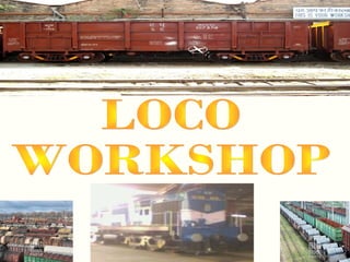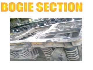 The document details the periodic overhauling process and maintenance operations for coach frames, diesel engines, and various mechanical components like braking systems and bogies. It includes descriptions of specific parts, their functions, and the assembly techniques used in the repair process. The workshop's infrastructure, including machine specifications and historical milestones, is also outlined.
