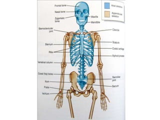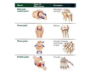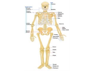 The document discusses the musculoskeletal system, which includes the skeletal and muscular systems. It provides information on the key components and functions of these systems. The skeletal system provides structure and protection to the body through bones and joints. It works with the muscular system to enable movement, with muscles connecting to bones via tendons and ligaments. Together the skeletal and muscular systems interact with other body systems like the nervous, digestive and circulatory systems to support movement and overall body function.