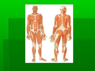 The document discusses the key components of the human locomotor system. It includes bones that make up the skeleton, which comes in three parts and provides structure and protection. There are three types of bones - long, short, and flat. Joints connect the bones and also come in three types - flexible, semi-flexible, and fixed. Muscles are connected to bones and contract or relax to move the skeleton, with two types - voluntary and involuntary. Together, bones, joints, and muscles allow the human body to move.