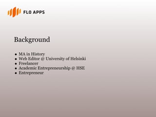 This document discusses some business cases for Linked Open Data and summarizes Tapio Nurminen's work publishing and visualizing Linked Data through his company Flo Apps Ltd. It describes a case study publishing dance data as Linked Data using D2R and mapping files, and discusses options for interfaces and visualizations using tools like Simile Widgets, JavaScript InfoVis Toolkit, and Raphaël. It concludes by emphasizing the importance of interactivity in data visualizations and combining expertise from different fields.