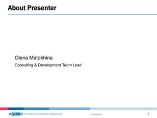 This document discusses log files and log aggregation solutions. It provides an overview of GrayLog, an open-source log management tool. GrayLog allows centralizing logs from multiple systems in one place and provides search and alerting capabilities. The presentation covers what logs are, challenges of working with logs, different log aggregation options, key GrayLog benefits like being open-source and free, features such as storing logs in ElasticSearch, and a basic GrayLog workflow. It concludes with contact details for EPAM's consulting and development team.
