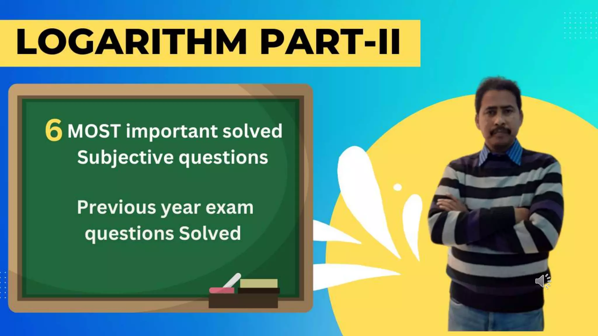 This document covers logarithms and includes an agenda with topics such as laws of logarithms and 6 practice problems. It refers viewers to a previous video that provides solutions to easier logarithm problems.