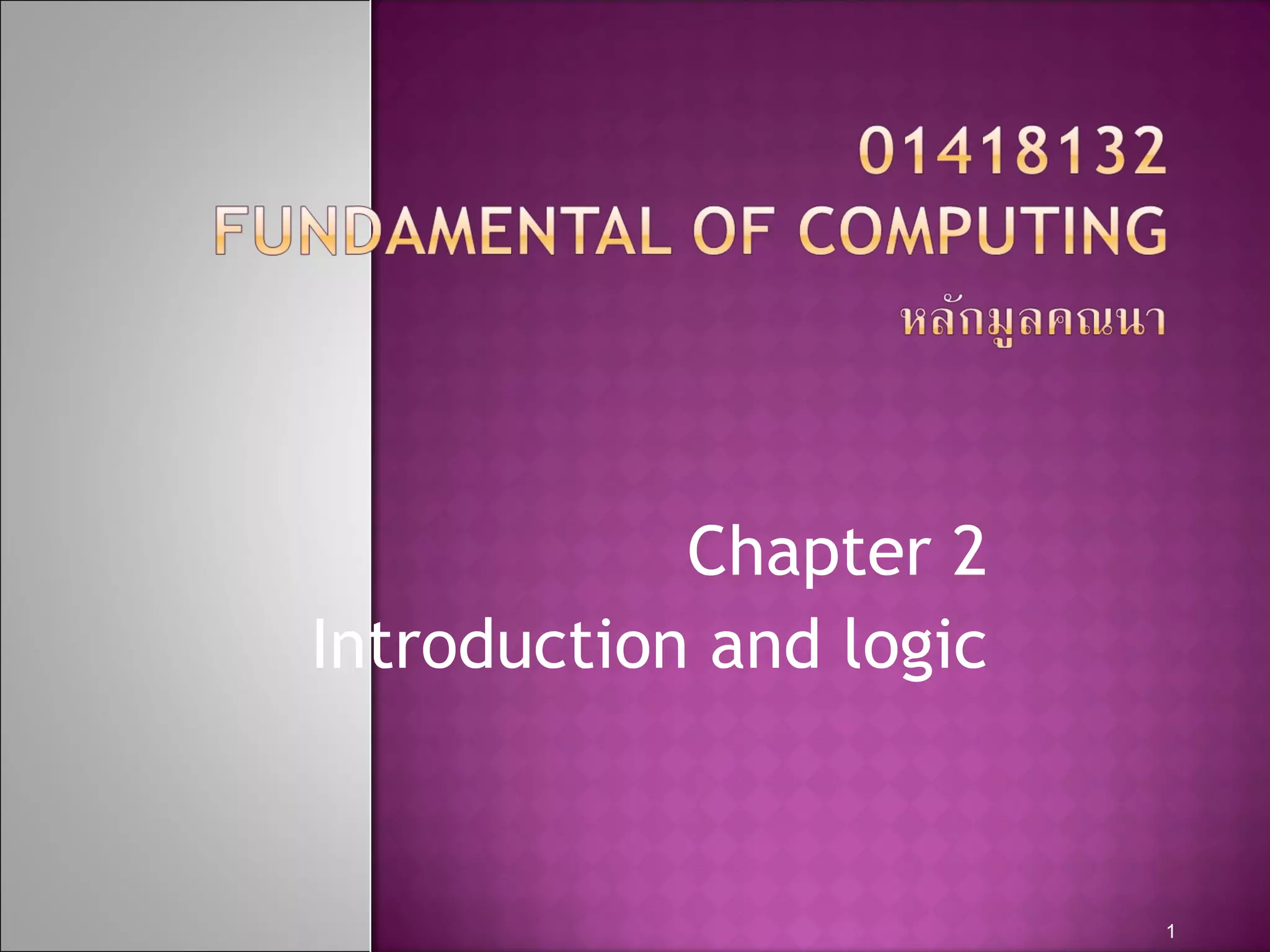 #14 Computer Science, Burapha University Note that AND is commutative and associative, which means that we can write a long conjunction (like in the first bullet on the left) without parenthesizing it. It also doesnât matter what order the n propositions are in. The fact that an n -operand operator has 2^ n rows in its truth table is an easy consequence of the product rule of combinatorics. Here is a proof. Note that for the table to be complete, we must have 1 row for every possible assignment of truth values to the n operands. Thus, there is 1 row for every function f : V -> B , where V is the set of operand columns { p , q ,âĶ} and B ={T,F}. Here, | V |= n and | B |=2. The number of functions from a set of size n to a set of size m is m ^ n . This is because of the product rule, as we will see in a moment. In this case, m =2 so we get 2^ n such functions. In terms of the product rule: There are 2 possible values for p . For each of these, there are 2 possible values for q, since the choice of q is independent of the choice of p. And so on. So there are 2x2xâĶ(n repetitions)âĶx2 possible rows, thus 2^ n . Of course, we havenât defined the product rule, set cardinality, or functions yet, so donât worry if the above argument doesnât quite make sense to you yet. In the second bullet, we would say, {NOT,AND} is a universal set of Boolean operators, but we havenât even defined sets yet. If you already know what a set is, a universal set of operators over a given domain is a set of operators such that nested expressions involving those operators are sufficient to express any possible operator over that domain. In this case, the domain is B={T,F}. The proof that {NOT,AND} is universal is as follows: OR can be defined by p OR q = NOT(NOT(p) AND NOT(q)) (easily verified; this is one of DeMorganâs Laws, which we will get to later). Now, armed with OR, AND, and NOT, we can show how to express any Boolean truth table, with any number of columns, as follows. Look for the cases where the last (result) column is T. For each such row in the truth table, include a corresponding term in a disjunctive expression for the whole truth table. The term should be a conjunction of terms, one for each input operand in that row. Each of these terms should be p if the entry in that position is âTâ, and NOT( p ) if the entry in that position is âFâ. So, the entire expression basically says, âthe value of the operator is T if and only if the pattern of truth values of the input operands exactly matches one of the rows in the truth table that ends in a âTâ result.â Thus, the expression directly encodes the content of the truth table.