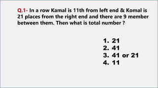 This document contains 42 reasoning questions with multiple choice answers. The questions cover a range of logical reasoning topics including seating arrangements, family relationships, coding/decoding, number/digit manipulation, and more. Each question is independent and not related to the others.