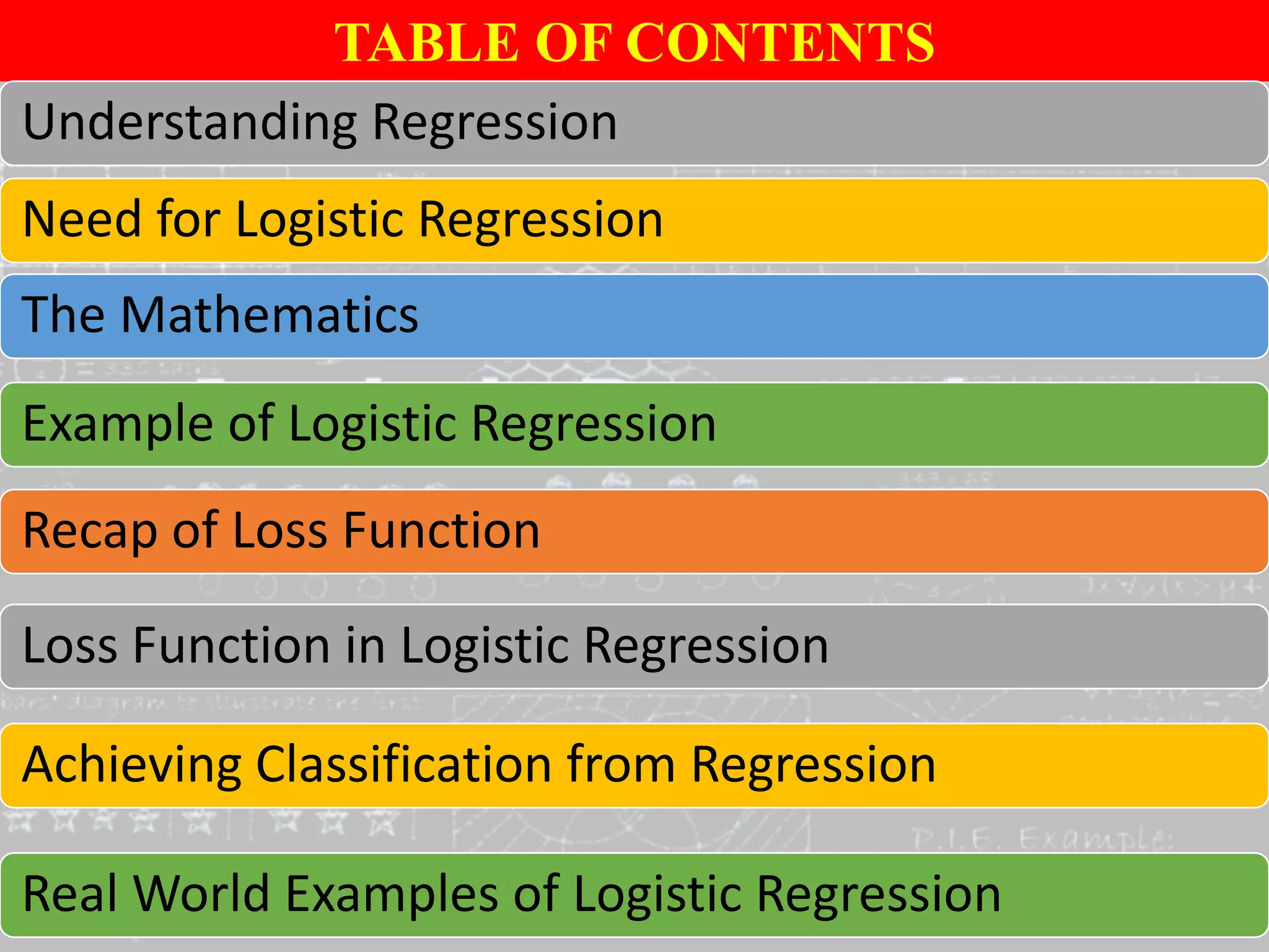This document provides an introduction to logistic regression, including an overview of its key concepts and applications. Logistic regression can be used for classification problems where the dependent variable is binary. It uses a logistic function to model the probabilities of different outcomes. The loss function for logistic regression is log loss, as it aims to model binary classification probabilities between 0 and 1. Real-world examples of logistic regression include predicting customer purchases, detecting heart disease, and identifying fraudulent activities.