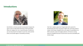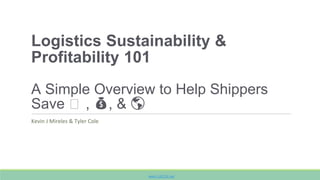 The document outlines strategies for enhancing sustainability in logistics while also reducing costs for shippers. It emphasizes the necessity of adopting best practices and existing technologies to minimize emissions and improve profitability within the logistics sector. Key recommendations include optimizing packaging, reducing transportation distances, and switching shipping modes to create a more efficient and environmentally friendly supply chain.