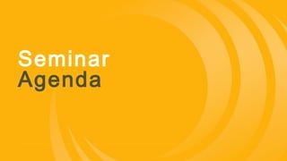 The document outlines a seminar agenda focused on logo design and development specifically for law firms. It covers essential elements of logo creation, including types, font characteristics, and the development process from research to launch. A case study illustrates the practical application of these principles with various design examples and considerations.