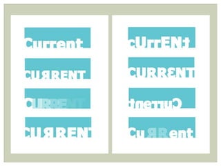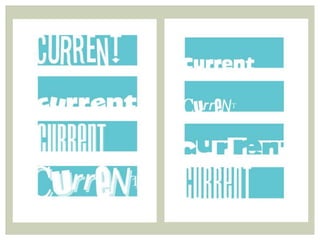 The document discusses logo experimentation for a music magazine. It examines different design elements for the logo including font, opacity, size, additional shapes and colors. The document provides examples of existing magazine logos. It also shares the results of a mini survey where readers selected their preferred logo designs. Finally, it proposes a 'current' logo using a Droid Serif font with flipped lettering to make it more recognizable as a brand. Minor adjustments may be made to the logo as the magazine is designed.