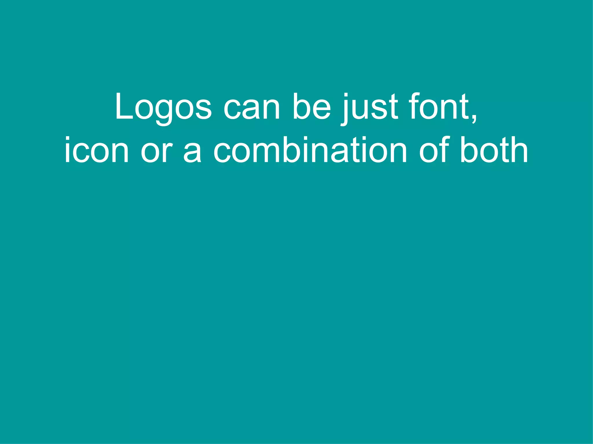 A logo can consist of a font only, icon only, or a combination of both an icon and font. When designing a logo, it should be clear, concise, communicate effectively, and be creative.