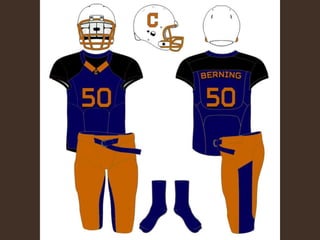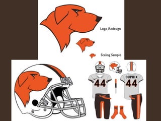 The document provides feedback on logo submissions for a football team. It shows the submitted logos anonymously and notes that participants can choose to claim their logo or remain anonymous. The feedback comments that most logos did well but some common mistakes were forgetting important colors, not following NFL style guidelines, and logos being too cute rather than fitting the league's image. Positives included vibrant use of colors, great contrast choices, and logos looking clean which meets NFL standards. Overall the feedback was that the submissions did well.