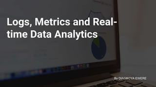 The document discusses logs, metrics, real-time data analytics, and tools used for collecting and analyzing such data. It defines what logs and metrics are, and names several tools for collecting and visualizing metrics as well as analyzing real-time data, including the ELK stack. The ELK stack consists of Elasticsearch for storage, Logstash for parsing, and Kibana for analytics and visualization. The document also provides examples of how the ELK stack works and how Terragon has applied it to various applications.