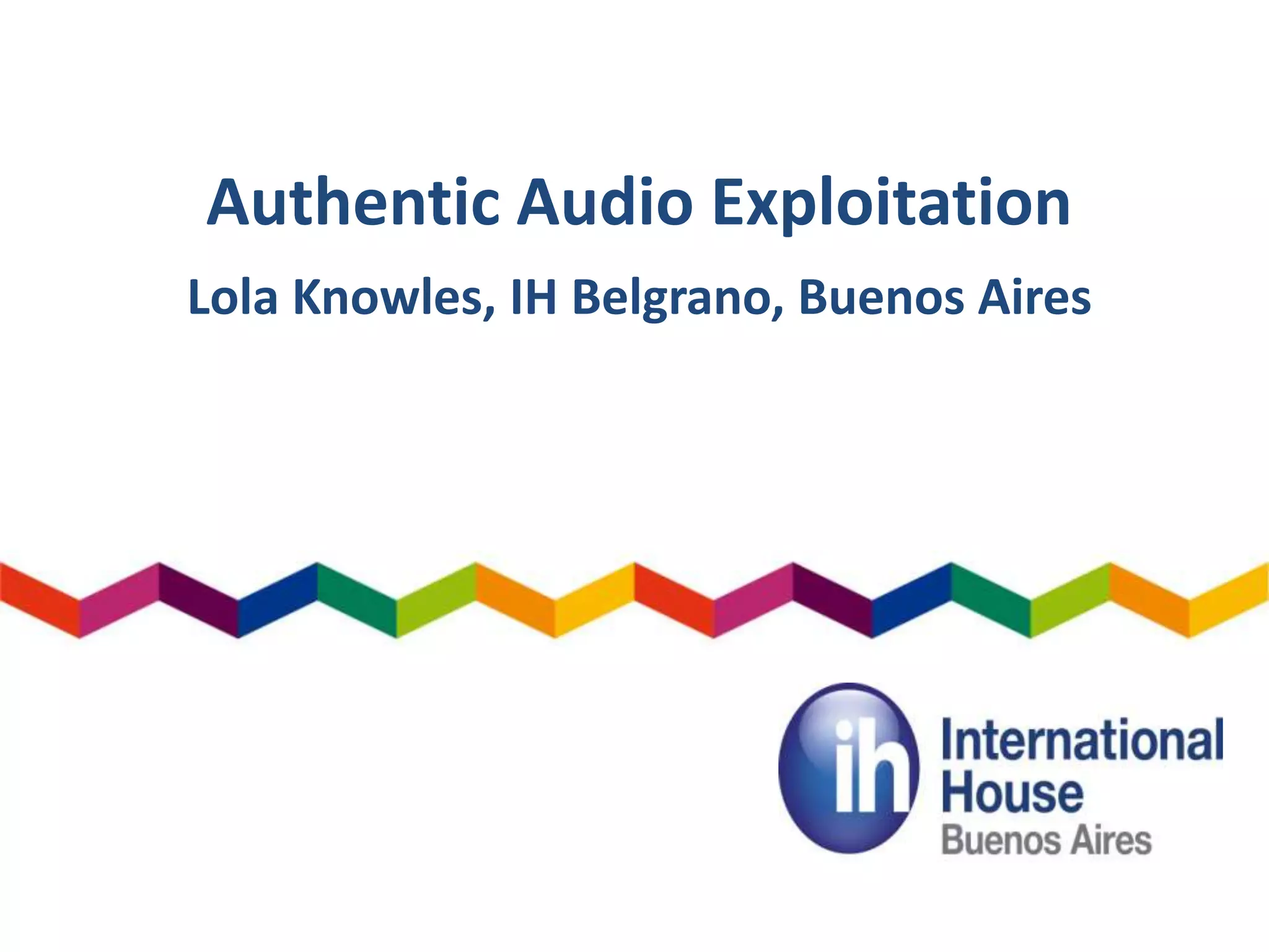 The document discusses using more authentic and engaging audio materials in English lessons rather than typical lessons focused on listening comprehension questions. It suggests choosing audio that the teacher is personally interested in that is rich in imagery or themes to raise student curiosity. Examples of exploiting audio include practicing fluency in informal settings, Cambridge-style speaking activities, focusing on language upgrades, and creative activities like having students write their own scripts. It also presents the idea of incorporating phonology lessons on topics like weak forms, connected speech, and teaching diphthongs. The key message is to choose audio that both the teacher and students will find interesting and enjoyable.