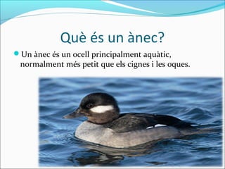 Un ànec és un ocell principalment aquàtic,