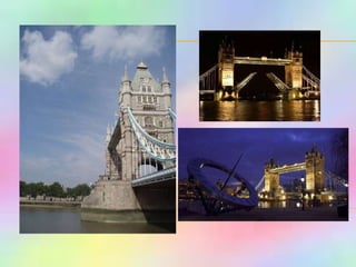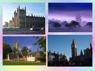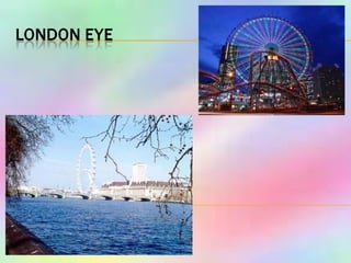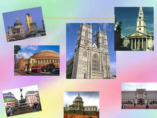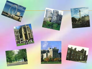 This document provides information about sights to visit in London, England. It includes descriptions of landmarks like Buckingham Palace, Big Ben, Tower Bridge, and Trafalgar Square. It also presents rhymes, questions, and games related to London sights and asks readers to identify places on maps. Quizzes test knowledge of British geography, history and culture.