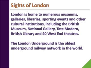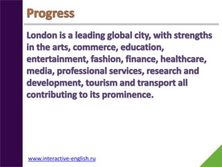 Интересная презентация по теме London - Лондон. Презентация рассчитана на школьников/студентов, изучающих английский язык.