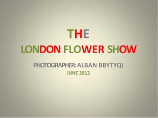 The London Flower Show took place in June 2012. Photographer Alban Bbytyqi documented the event, capturing photos of the flowers on display. The short article provides information about the flower show and photographer.