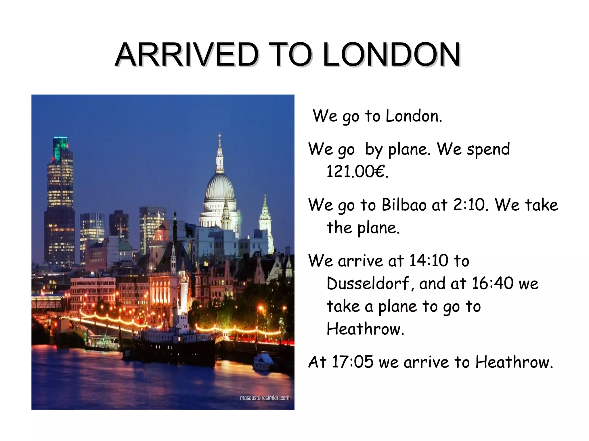 The document details a trip to London over 4 days. It describes the travel to London, staying in a hostel in Kensington for 10.44 euros, and activities each day including visiting London Eye, Westminster, Covent Garden, Leicester Square, Big Ben, Victoria and Albert Museum, Trafalgar Square, and Hyde Park, making use of the tube system to travel between locations. On the 4th day they fly back to Bilbao, arriving at 1:30pm and then take a taxi to return to Oiartzun an hour later, concluding the trip.