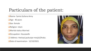 Samia Sultana Anny, a 40-year-old housewife, presented with watering and purulent discharge from her left eye for 4 years and 1 year, respectively. Examination revealed matted eyelashes, full lacus lacrimalis, and a positive regurgitation test on the left side, indicating chronic dacryocystitis. Investigations and management with left dacryocystorhinostomy and intubation were planned. Differential diagnoses included acute dacryocystitis and punctum stenosis.