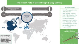 The document provides an overview of the emerging longevity industry, including key players, sectors, trends and future reports. It discusses leading companies, investors, conferences and the landscape of geroscience, regenerative medicine, gene therapy and P3 medicine. It also outlines topics to be explored in more detail in upcoming reports, such as the business of longevity, industry markets, clinics and novel investment approaches. Interactive network maps and databases will visualize specializations and interactions between stakeholders in the longevity field.