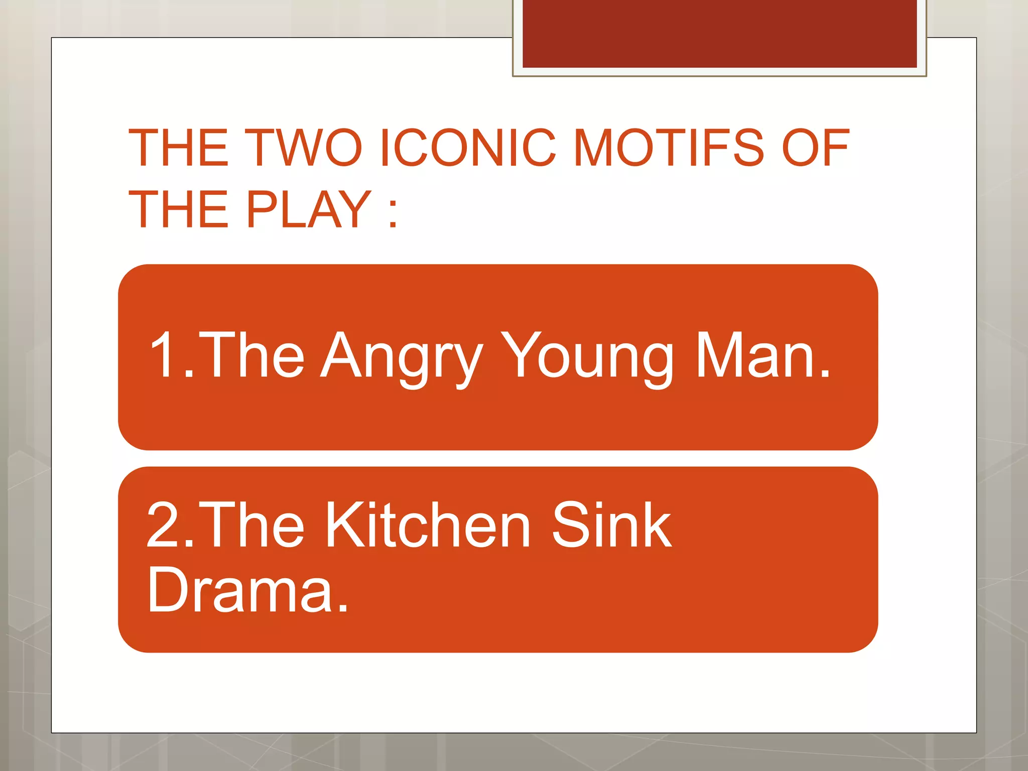 The document provides background information on John Osborne's 1956 play "Look Back in Anger". It introduces the two main motifs of the "Angry Young Man" and "Kitchen Sink Drama". The play was groundbreaking for depicting the domestic lives and raw emotions of the working class in postwar Britain. The main character, Jimmy Porter, came to epitomize the disaffected youth of the time and their anger towards the declining British class system and empire. The play captured the mood of social change in 1950s Britain.