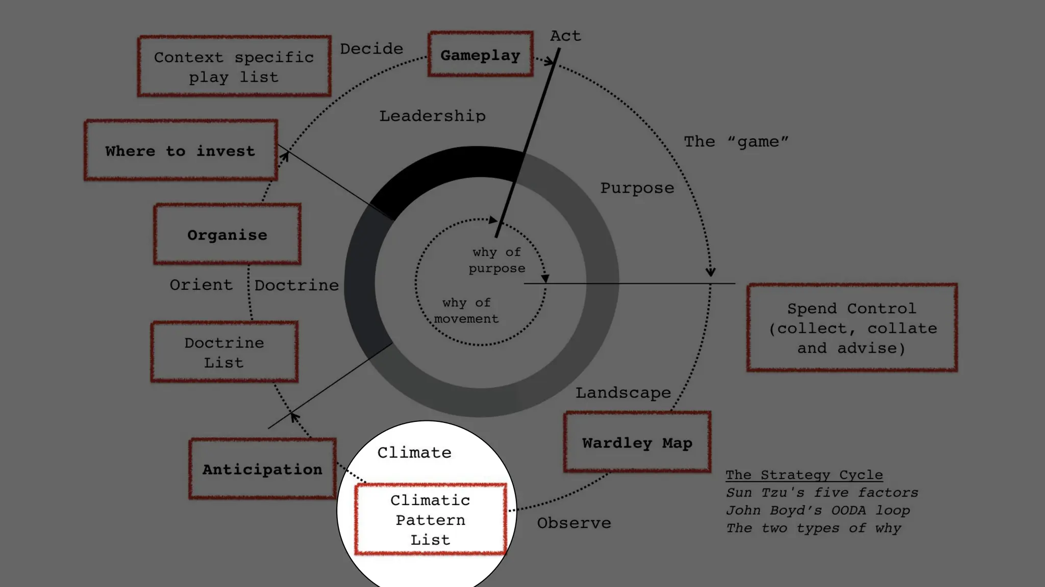 In a company, department, or team, we will often talk about “strategy”. This term is rarely well defined, or at least not defined in a way that is useful. It usually means that we need to see into the future to outmaneuver our competition, or at least to navigate a changing market and competitive landscape. Traditional tools are limited in their ability to help us which led Simon Wardley to create maps that have helped him (and now others) to understand the current landscape as well as see common patterns that can allow you to “predict the future”.