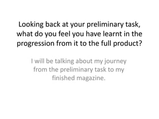 From the preliminary task to the final product, the student learned several important lessons: