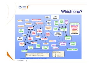 The document outlines various process improvement models, emphasizing the importance of well-defined processes for delivering quality products and services. It discusses several frameworks, including ITIL, ISO 9001, CMMI, and others, detailing their applications, benefits, and the importance of management commitment to successfully improve organizational processes. Additionally, it provides exercises and scenarios aimed at developing strategic plans for process improvement, while highlighting the long-term benefits of adopting international standards.