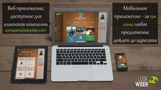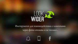 Документ описывает веб-приложение и мобильное приложение для взаимодействия с клиентами через фото-отзывы и обратную связь, предлагая решения для проблем, связанных с потерей клиентов и репутацией компаний. Основные преимущества включают возможность отслеживать отзывы по каждому филиалу, гарантированный ответ на замечания клиентов и интеграцию с социальными сетями для повышения положительного имиджа бренда. Также рассматриваются ключевые цифры и статистика, показывающие, как эффективное взаимодействие с клиентами может привести к повышению прибыли и лояльности.