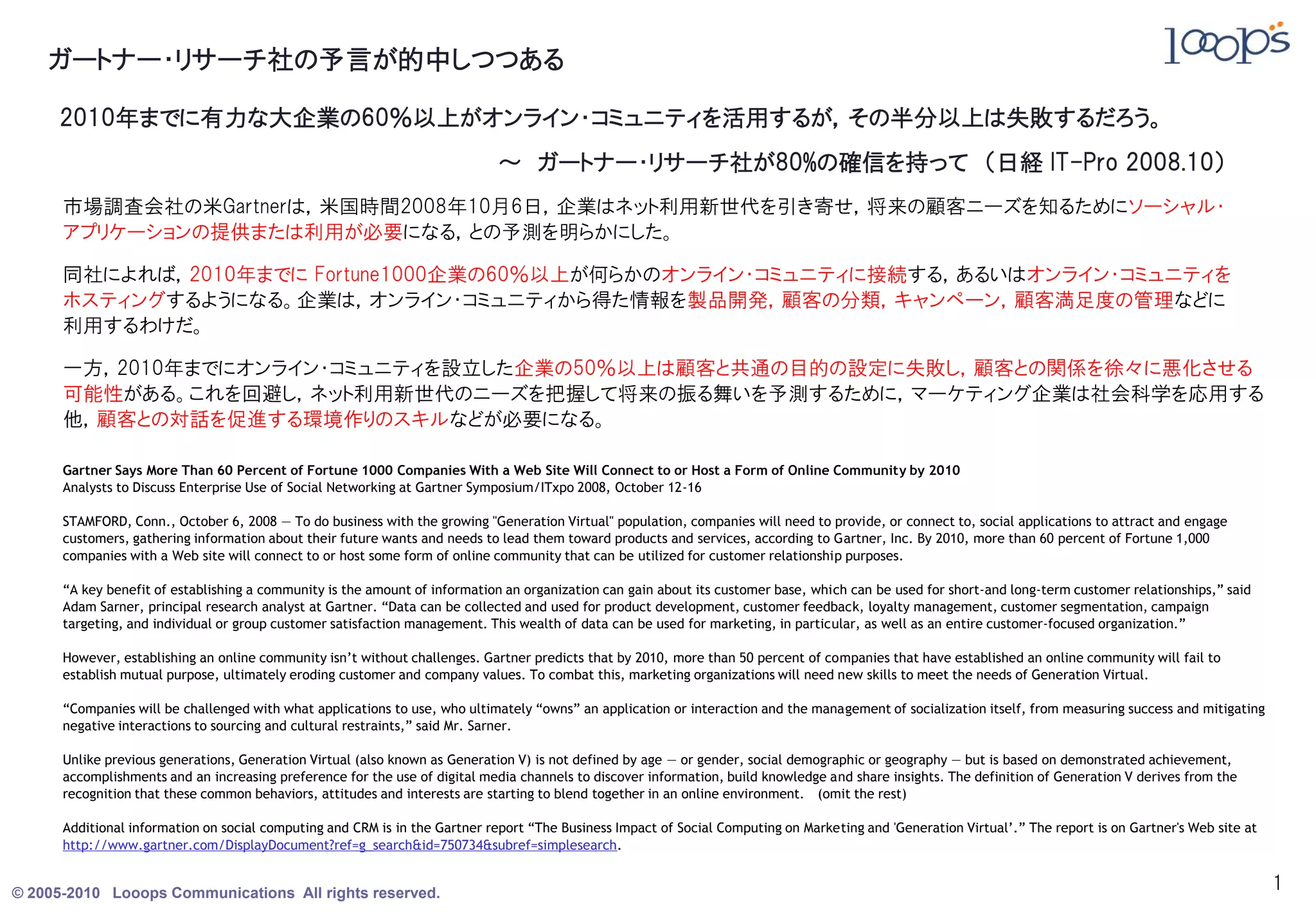 同社によれば,2010年までに Fortune1000企業の60%以上が何らかのオンライン・コミュニティに接続する,あるいはオンライン・コミュニティを