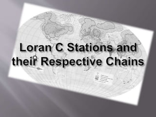 Loran-C is a hyperbolic radio navigation system developed by the US Coast Guard. It works by measuring the difference in arrival time of radio signals transmitted from two synchronized stations. By obtaining time differences from multiple station pairs, a receiver can calculate its position on the globe. The system uses a network of transmission stations around the world to broadcast low frequency radio pulses that are precisely timed using atomic clocks. Loran-C provides positioning accuracy within a few miles and was an important maritime and aviation navigation system before being replaced by GPS.