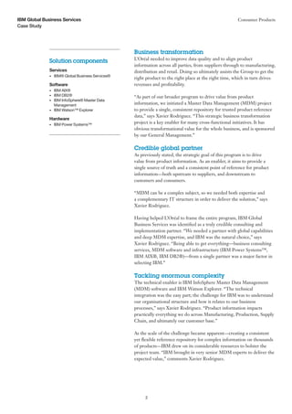 L'Oréal is a global leader in beauty products with brands in 130 countries. It wanted to improve the quality and consistency of product information managed across different systems and regions to increase efficiency. L'Oréal worked with IBM to implement a master data management system using IBM InfoSphere and Watson Explorer. This has provided a single source of trusted product information, driving significant improvements in data quality and enabling new strategic initiatives.
