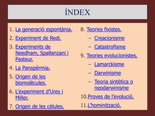 • Síntesi prebiòtica: La vida va sorgir a partir dels