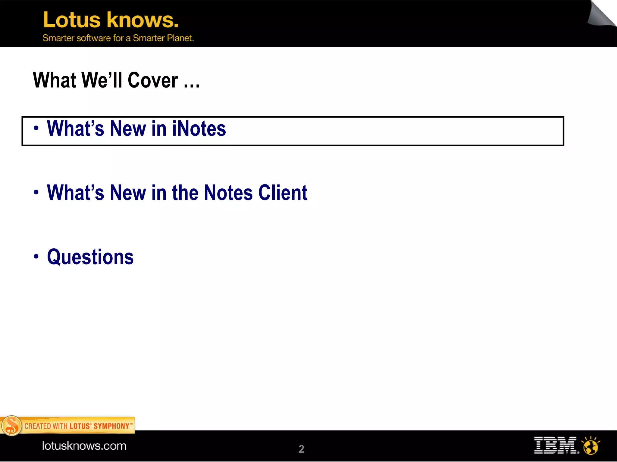 The document summarizes new features in IBM Notes and Domino 8.5.1, including improvements to the Notes client, iNotes web mail, calendar, rich text editor, replication and synchronization, widgets, and general functionality. Key updates include auto-refresh and unread counts for mail folders in iNotes, new calendar features like accepting meetings from previews and drag-and-drop rescheduling, enhanced rich text editing tools, and improved replication monitoring on the replicator page.
