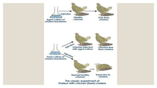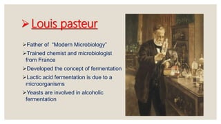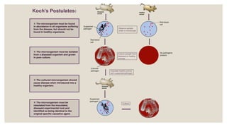 Louis Pasteur and Robert Koch made seminal contributions to microbiology in the late 19th century. Pasteur established that microorganisms are responsible for fermentation and cause disease, developed pasteurization to kill pathogens, and produced the first vaccines. Koch introduced techniques like staining and solid media isolation that allowed isolation of specific pathogens, including the anthrax bacillus, tuberculosis bacillus, and cholera vibrios. He established criteria now known as Koch's postulates to prove a microbe's role in causing disease. Together, Pasteur and Koch founded the field of medical microbiology through their pioneering studies of specific microbes.