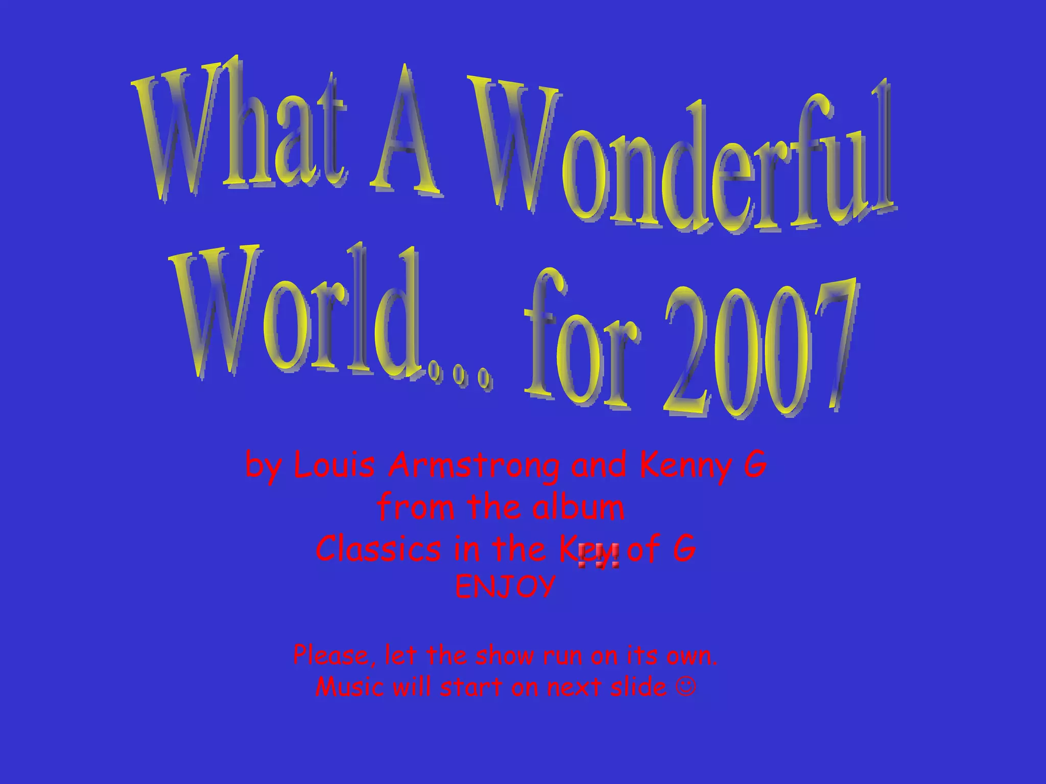 The document is lyrics to the song "What a Wonderful World" by Louis Armstrong. It describes the natural beauty of the world with references to trees, roses, skies, and rainbows. It also mentions the human interactions of people shaking hands and babies growing, and expresses the thought that the world is truly wonderful.