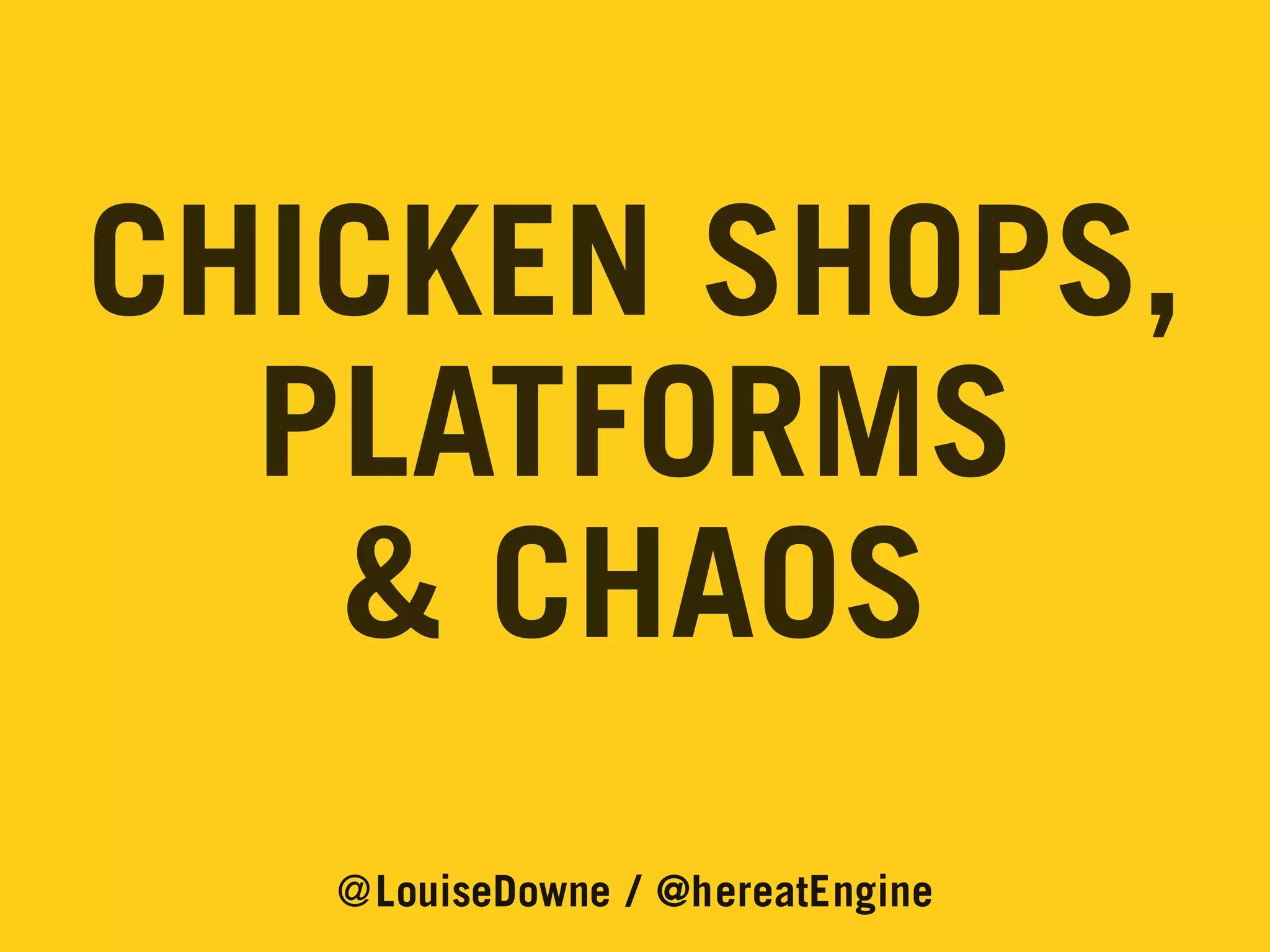 The document appears to be a collection of tweets and quotes from various individuals on topics related to technology, design, and the future. There are tweets discussing designing the future, why we shouldn't, chicken shops and platforms, images from various organizations, disjointed public service design in the UK, and quotes on small things loosely joined, only trusting what we know how it works, and not designing the future but designing something the future can design. The tweets are attributed to @LouiseDowne and @hereatEngine and cover a wide range of issues related to technology and its impact.