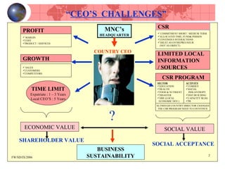 The document discusses the 'Love Indonesia' program by Habitat for Humanity, focusing on corporate social responsibility (CSR) strategies and challenges. It emphasizes the need for long-term, community-centric initiatives that align with local cultures and values, highlighting the importance of direct engagement and understanding of social dynamics. Key areas of focus include sustainability, education, health, and disaster response, with a call for more effective and tailored CSR efforts.