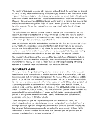 3. Research also shows students in detracked algebra classes did not learn as much as those in tracked classes, across all ability levels. This calls