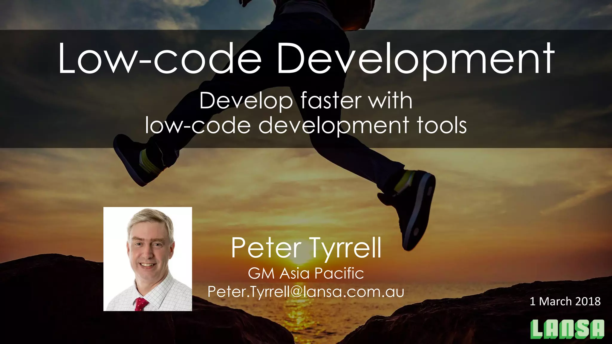 This document discusses low-code development platforms and their benefits. It notes that demand for application development will outpace organizations' capacity to deliver by 2021 unless approaches like low-code are adopted. Low-code allows creating application software through graphical interfaces rather than traditional coding, reducing complexity. It can help with prototyping, accelerating design and maintenance, integrating with other systems, and simplifying deployment. The document promotes LANSA as a low-code platform that can help organizations complete more projects by making development faster and more productive.