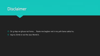 This document appears to be a student presentation about low frequency current that contains mostly placeholder text and jokes apologizing for the lack of substantial content. It includes sections for introduction, low frequency current, formula, and applications, but provides no actual information about the topic. The presenter acknowledges this is likely not what the teacher was expecting and apologizes for not having time to properly prepare due to a lack of internet access.