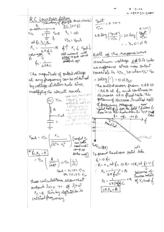 This document discusses capacitive reactance and how it varies with frequency. It explains that capacitive reactance decreases as frequency increases, so all the voltage passes through the capacitor at high frequencies rather than low frequencies. This concept is key to understanding how low-pass and high-pass filters work by allowing either low or high frequencies to pass through based on the capacitive reactance.